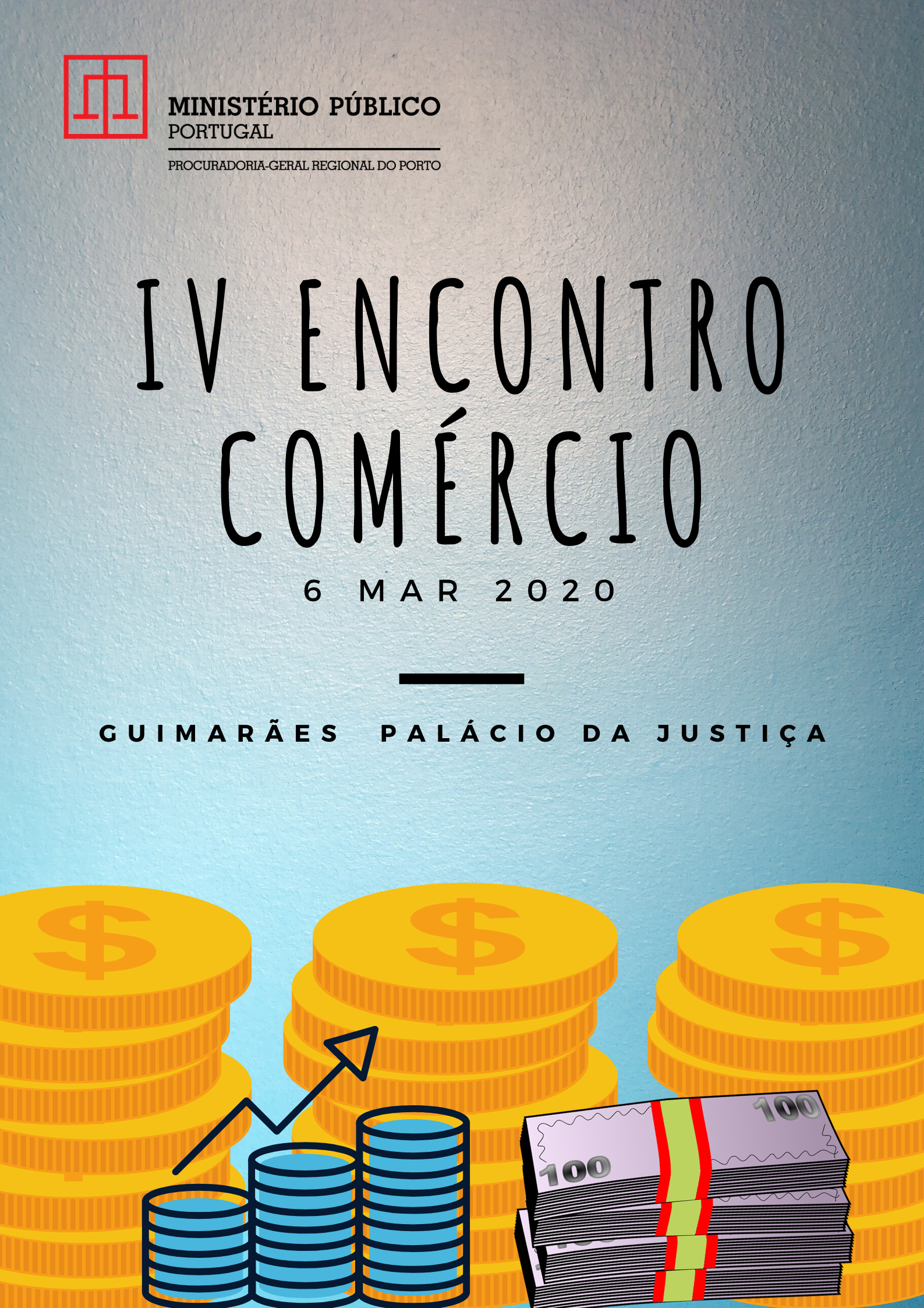 No dia 06 de Março de 2020, entre as 09.30 e as 17.00 horas, em Guimarães, Palácio da Justiça, decorrerá o IV ENCONTRO DO COMÉRCIO, dirigido aos Magistrados do Ministério Público da área das comarcas dos Tribunais da Relação do Porto e de Guimarães, com intervenção na jurisdição do comércio, no qual estará presente a Procuradora-geral regional do Porto.